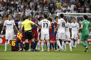 Además, si el Real Madrid ha hecho gala de un saber perder exquisito, no sólo tolerando que se celebrase la consecución de una liga por parte de su eterno rival en el Santiago Bernabéu, sino incluso aplaudiendo la grada el brillante juego rival (como en el 0-3 de la temporada 2005-2006 o el 2-6 de la 2008-2009 que sentenció la primera liga de la era Guardiola), los barcelonistas han sido incapaces de reconocer los méritos ajenos e incluso han evitado con malos modos la celebración de un rival, como sucedió en la temporada 2009-2010, cuando el Inter de Milán entrenado entonces por Mourinho no pudo celebrar en el Camp Nou su pase a la final de la Liga de Campeones porque jugadores como Víctor Valdés se lo impidieron, y porque el propio club ordenó poner en marcha el riego por aspersión del césped para espantar a los interistas.