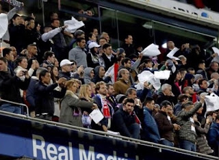 Se acabó, os imaginaríais al ver un Bernabéu explotando contra el presidente, entrenador y jugadores. Desquiciado, roto y hundido. Con una megafonía a tope para coartar la libertad de expresión del socio / aficionado tras el final del partido.