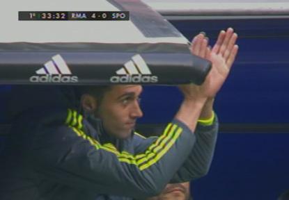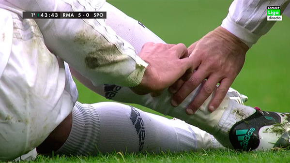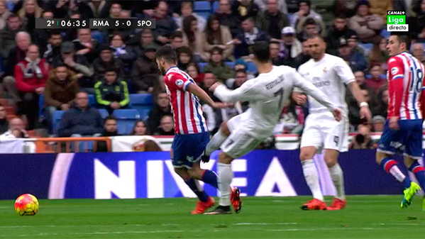 Pero claro, ante tanto rayo, tanto trueno y tanta lluvia, Bale pisó un charco y tuvo que ser sustituido en la segunda parte por Jesé (parece soleo). El canario ha recibido un premio a no sabemos qué, en forma de confianza por parte de ZZ. Una segunda parte que comenzaba con dureza por parte del Sporting (bastante) y con una acción de CR7 que pudo costarle la roja (una «patadita» tras una falta recibida).