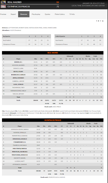 + VAYA NOCHE DE SPANOULIS Y PRINTEZIS. Del primero ya hemos hablado, lo hicieron desaparecer Llull y Taylor, pero es que, a la otra estrella y referente del Olympiakos, tampoco se la vio por Madrid. Muy errático en el tiro, tampoco pudo frenar a un Felipe Reyes, que supo atacarle. Viendo su actuación, se entienden los pocos minutos que tuvieron los dos hombres llamados a marcar las diferencias.