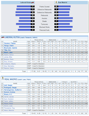 + % TRIPLES Y REBOTE. 26 seis triples lanzados, y solo seis anotados. Lo peor, es la insistencia aún cuando no se está acertado. No hay otro plan de juego, el primer mandamiento del baloncesto de Laso es el tiro exterior, y parece que no sabe cambiar el guión sobre la marcha, cuando el rival o tu escaso acierto, te obligan a jugar a otra cosa.