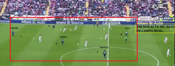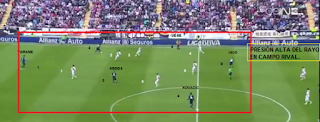 La presión del Rayo ya habitual en el equipo de Paco Jémez, presión alta con un desorden táctico, un equipo que no le importa el resultado para no dejar de presionar arriba, de tener el balón y de atacar.