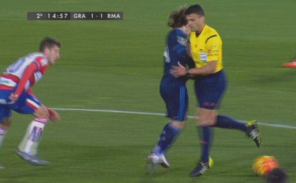 Granada 1-Real Madrid 2: Se anuló un gol de manera correcta al Granada y se solicitó un penalty que se vio en la repetición que Keylor saca el balón. Y una cosa inaudita. El robo del balón del árbitro (que se disculpó con Modric, ojo). El árbitro es un elemento más del juego, como un poste, eso no quita que no se puede estar peor colocado.