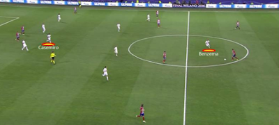 4-1-4-1 del Real Madrid en defensa con Casemiro entre la línea de defensa y centro del campo.