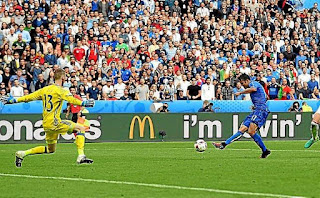 Min 91 Gol de Italia. Pellé redondea su partidazo rematando un centro de Darmian que entró solo por la banda derecha.