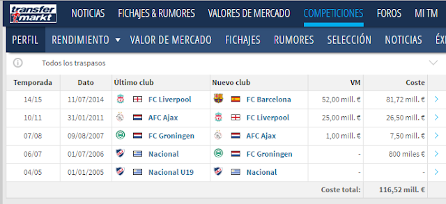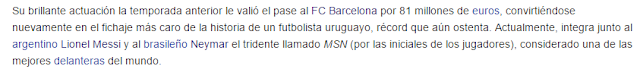 Bueno tras el desvelamiento del precio final de Luis Suárez, wikipedia y transfermarkt habrían cambiado el precio de Suárez, pues no. Todavía para ambas webs, y para muchas otras, medios de comunicación y demás, Luis Suárez sigue valiendo 81 millones. Si, ni siquiera los 84 que ya dijo Bartomeu (mintiendo) que valía. Siguen en la cifra inicial y modesta de 81.