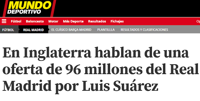 El Real Madrid se presentó ante las oficinas del Liverpool para tantear el fichaje de Luis Suárez. La respuesta fue que se remitían a la clausula de 96 millones. Fue entonces cuando Florentino Pérez dijo la famosa frase de que Luis Suárez no era buen jugador. Quizás el mandatario vio excesiva esa cifra. En Mundo Deportivo se inventaron que el Madrid habría ofrecido 96 millones, cuando en realidad es que esa era la clausula del jugador. Todos los diarios dieron la noticia de que el Liverpool se remitiría a la clausula.
