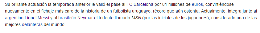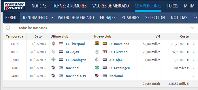 Bueno tras el desvelamiento del precio final de Luis Suárez, wikipedia y transfermarkt habrían cambiado el precio de Suárez, pues no. Todavía para ambas webs, y para muchas otras, medios de comunicación y demás, Luis Suárez sigue valiendo 81 millones. Si, ni siquiera los 84 que ya dijo Bartomeu (mintiendo) que valía. Siguen en la cifra inicial y modesta de 81.