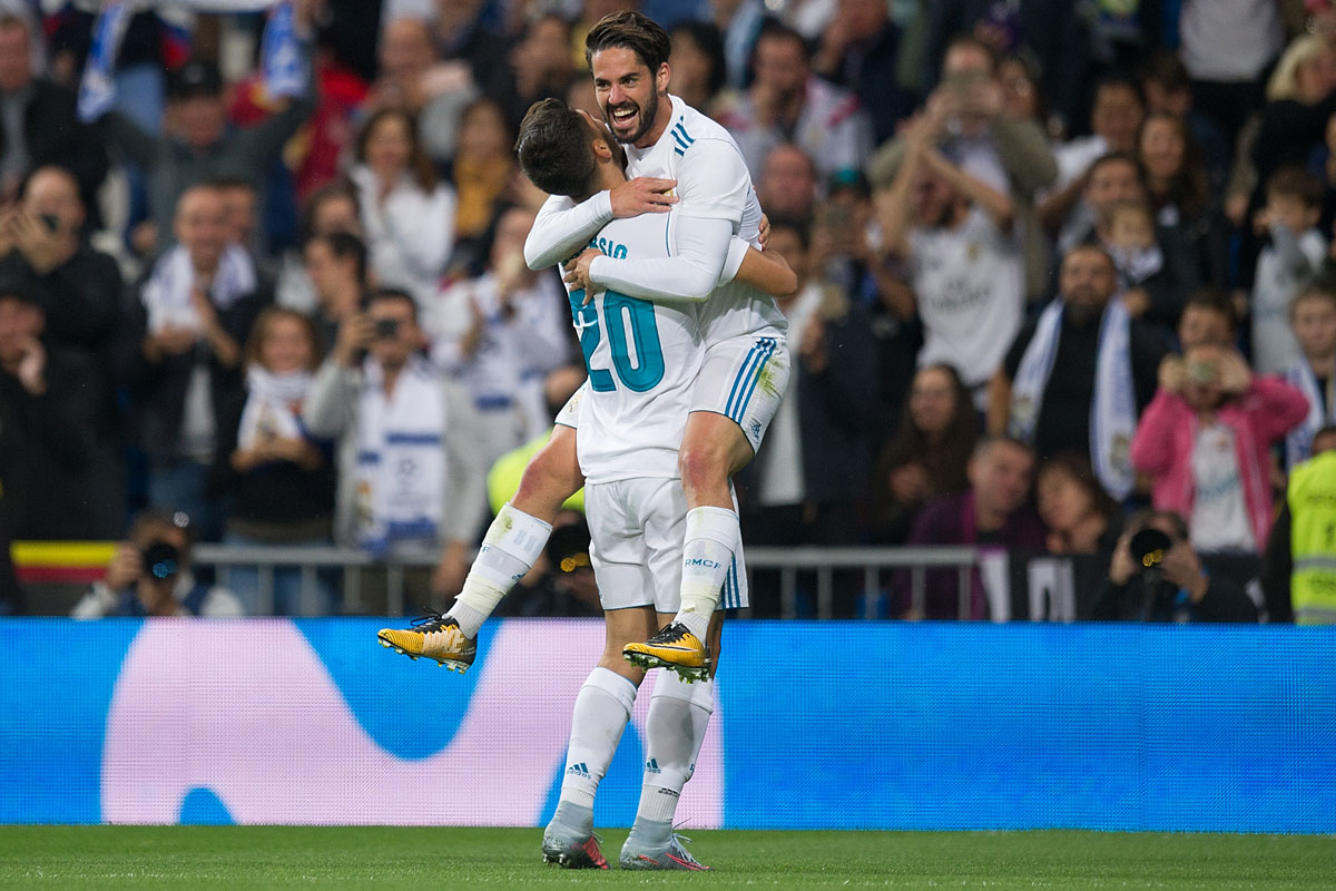Isco y Asensio se abrazan tras la consecución del 2-0 | Real Madrid 3-0 Eibar