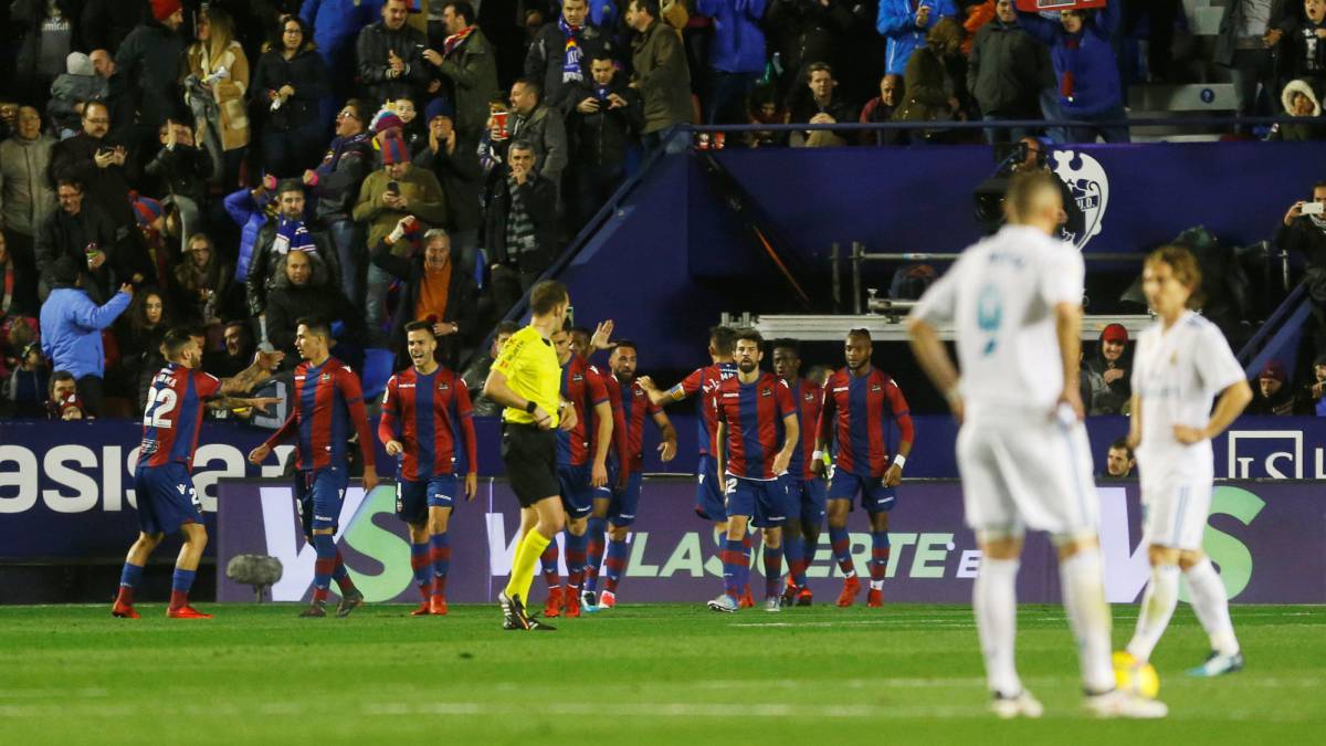 Sobre el minuto 40, el jugón del Levante agarra un balón en el centro del campo. Está solo, nadie le presiona…ya saben, es el Levante, ni merece la pena preocuparse por él. Ya fallará. Pero no falla y manda un balón medido a su delantero. Ramos ve el desmarque y el pase, pero… es el Levante…ya lo controlará mal o se tropezará. Pero no se tropieza y se planta solo ante Keylor (el único, tal vez por sus batallas en equipos más humildes, que se toma en serio el asunto). Dispara y Keylor rechaza el remate que le cae a otro jugador del Levante, al que ningún centrocampista del Madrid había acompañado en el contrataque. De hecho los centrocampistas ven la jugada en lontananza, muy atrás. Total, es el Levante, no le gana a nadie, no merece la pena esforzarse en bajar. Y gol, claro.
