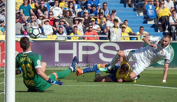 Eso se notó porque la UD Las Palmas salió con más fuelle y trató de achuchar algo más a la defensa madridista a la hora de sacar la pelota controlada aunque sin demasiado éxito. De hecho, al primer minuto de la reanudación un buen pase al área de Asensio desde la izquierda fue mal rematado por Benzema, bien encimado por Ximo Navarro.