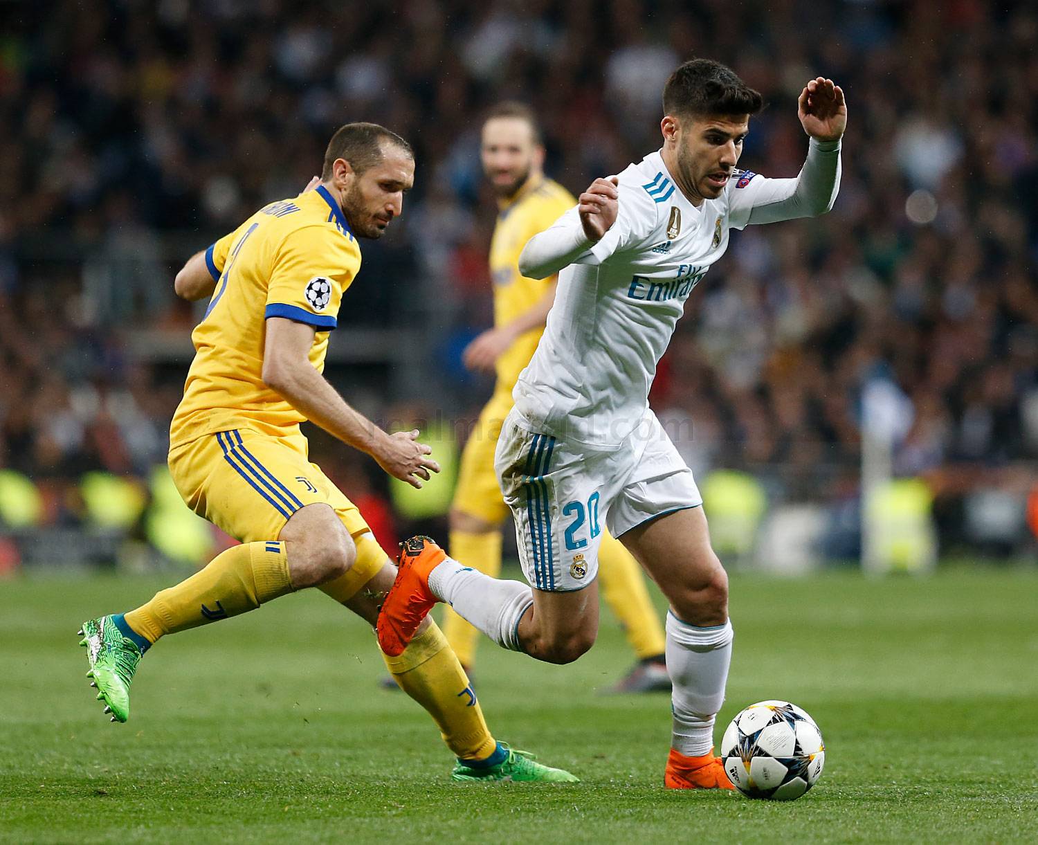 En el minuto 79 Varane se revolvió bien en el área pequeña, tras un pase de Asensio pero su disparo se marchó alto y en pleno zafarrancho blanco, apenas un minuto después Chiellini estuvo a punto de marcarse un gol en su propia meta, al ajustar en exceso un mal despeje de cabeza.