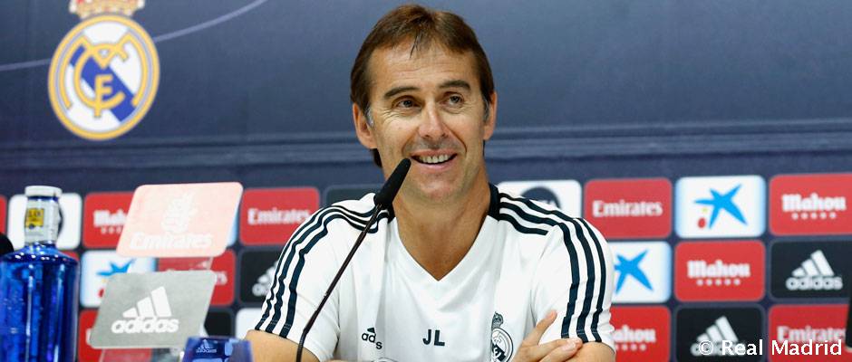 Julen Lopetegui ofrece su primera rueda de prensa de la temporada, para analizar la previa del estreno liguero del Real Madrid ante el Getafe de José Bordalás.