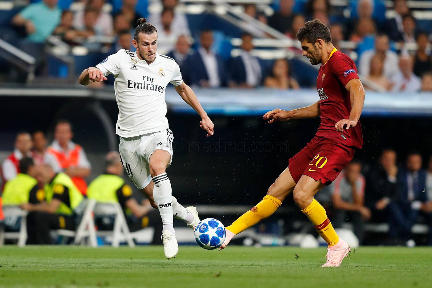 Ni tres minutos tardó en dar el primer latigazo el Real Madrid cuando un pase de Kroos a la espalda de la defensa romanista habilitó a Bale pero su disparo, excesivamente cruzado acabó en saque de puerta.