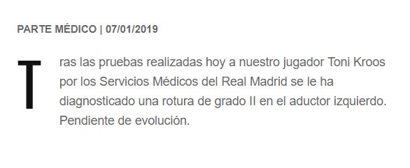 Con esta nueva e inoportuna lesión, Solari pierde nuevamente a uno de sus referentes, justo cuando el alemán empezaba a recuperar la forma tras la lesión que le dejó fuera ante el Valencia y le dejó fuera de combate durante más de 15 días.