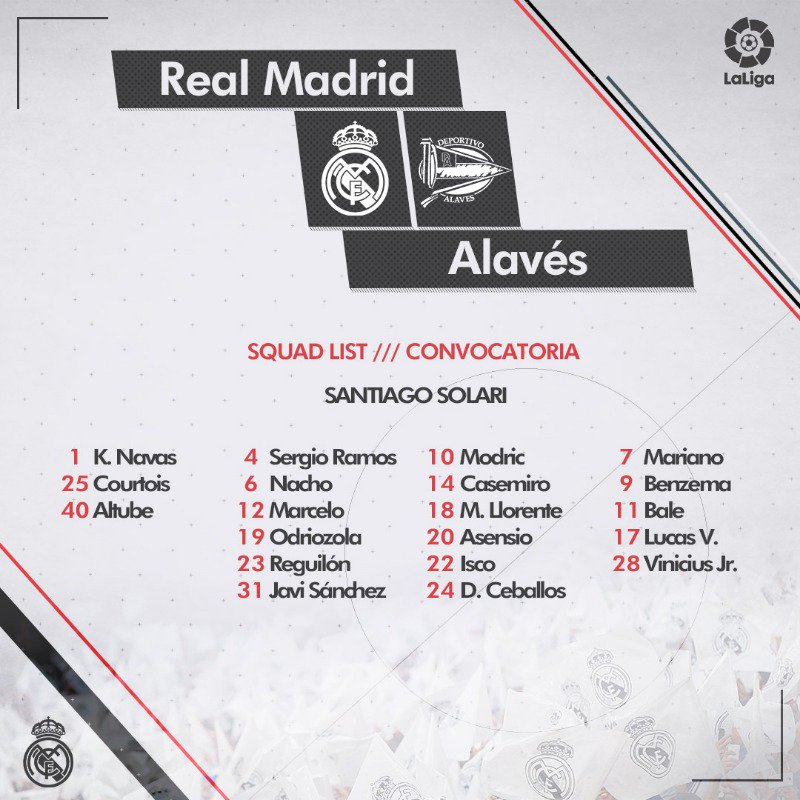 • Delanteros: Mariano, Benzema, Bale, Lucas Vázquez y Vinicius Jr.