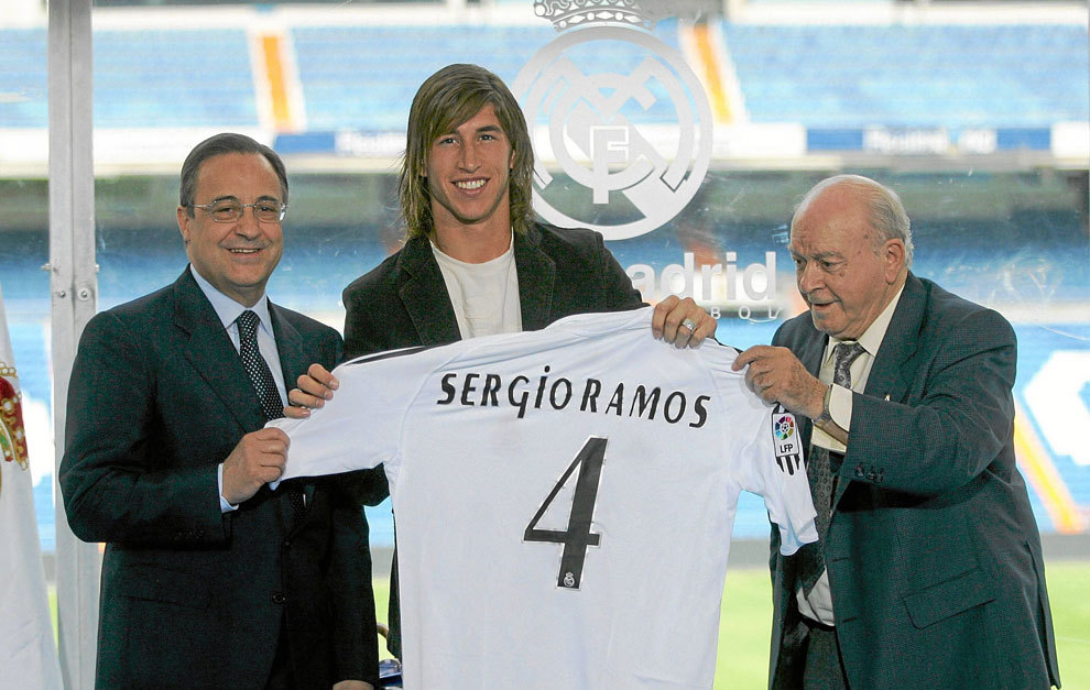 Sergio Ramos llegó al Real Madrid en septiembre de 2005, procedente del Sevilla, con tan solo 19 años, en la que fue una apuesta personal del club por un joven jugador que había despuntado en Liga con el equipo hispalense y que, con tan solo 18 años ya había debutado con la Selección absoluta.