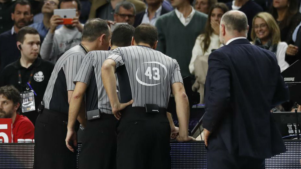 Pero las cosas han ido más allá ya que, ante el silencio de la ACB, el órdago del Real Madrid ha sido fulminante. O cesan fulminantemente a Juan Carlos García González, Miguel Ángel Pérez Pérez y Benjamín Jiménez, los tres colegiados del encuentro, por su falta de profesionalidad o retirarán al equipo de la Liga Endesa.