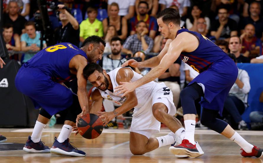 Con Tavares en pista y su inmenso poder intimidador y una fortísima defensa, especialmente de Campazzo -absolutamente omnipresente en el campo- y las ayudas de Randolph y, puntualmente de Ayón, el Real Madrid volvió a maniatar al Barcelona y acabó el primer tiempo con cuatro puntos de ventaja (33-37). De hecho, el desacierto anotador blanco en este período impidió que la ventaja hubiese sido más amplia al descanso.