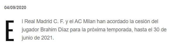 El malagueño Brahim Díaz ha oficializado su cesión al Milan, equipo al que llegará para disputar únicamente esta temporada ya que dicho contrato no contempla la existencia de ninguna cesión de compra.