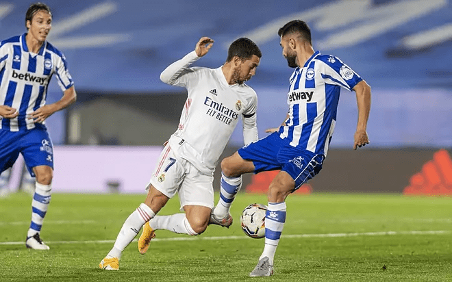 El colegiado no señaló penalti por este claro derribo de Duarte a Hazard en la primera parte | Real Madrid 1-2 Alavés