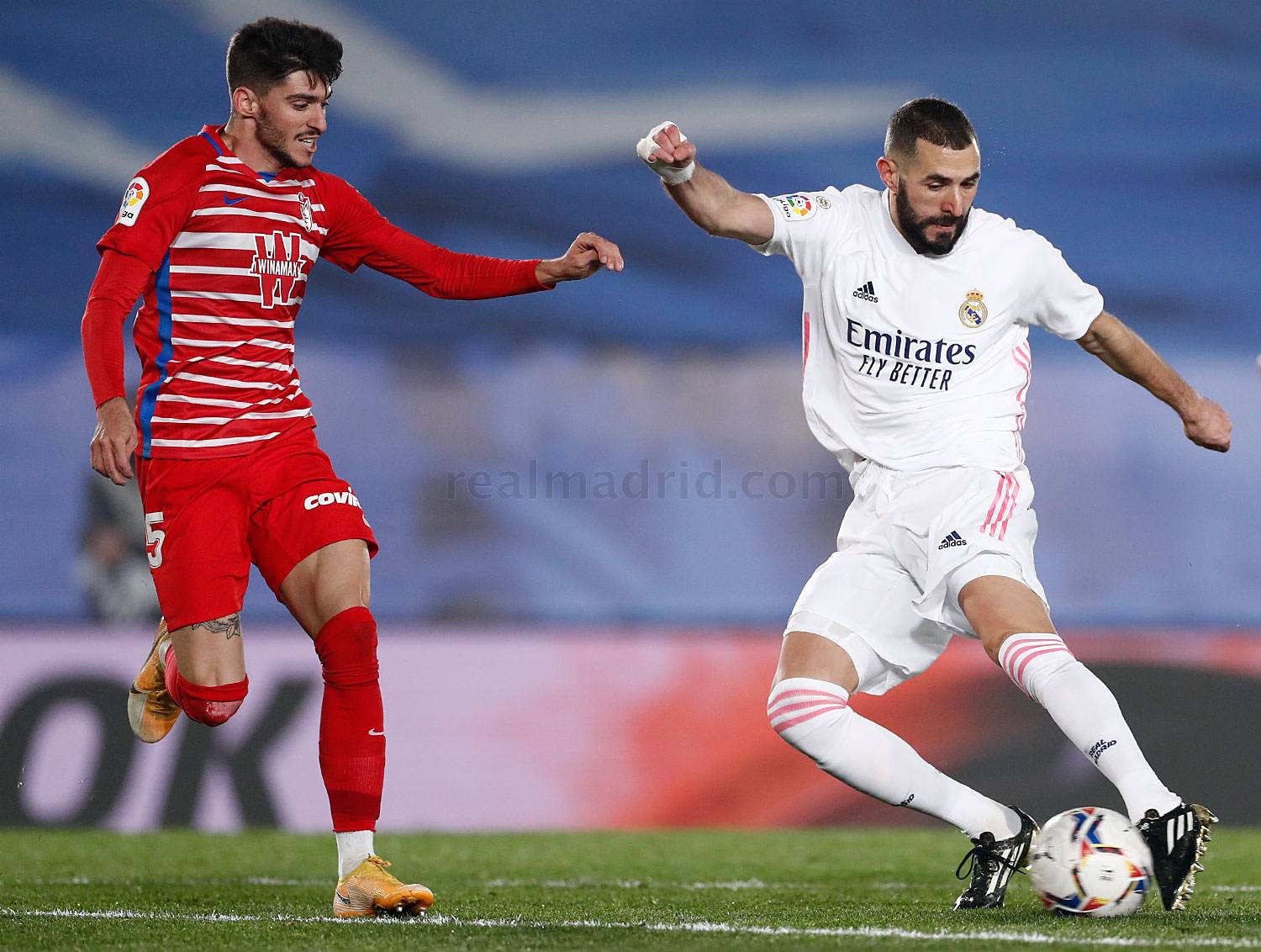 Eran, pues, los mejores momentos del Real Madrid, cuyos jugadores habían logrado sacudirse la presión del Granada y empezaron a mover la pelota con rapidez y acierto, y a encontrar cada vez más líneas de pase.