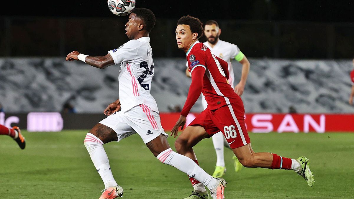 Alexander-Arnold es un mal defensor, cosa que ya era cuando dominó en Europa. La diferencia es que entonces tenía a Joe Gomez para corregir sus errores. Ahora, con Nathaniel Phillips, central que el año pasado jugaba en Bundesliga II (Segunda División alemana), los errores pesan más. El central, si bien defendiendo el área ha mostrado mucho potencial, lejos de su portería es una presa fácil para las diagonales de Vinicius.