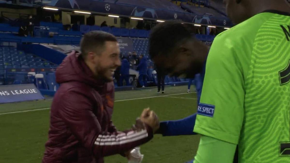 Al acabar el encuentro, mientras el equipo se retiraba cabizbajo hacia los vestuarios del estadio londinense, las cámaras se centraban en Eden Hazard, ex-futbolista del Chelsea que, junto a Thibaut Courtois, aprovecharon para saludar a algunos antiguos compañeros.