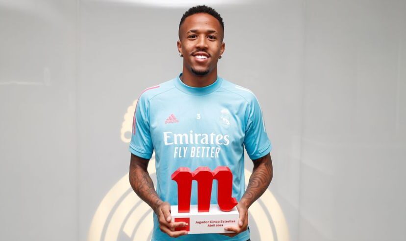 El central brasileño Eder Militao ha sido el elegido por los internautas y seguidores madridistas como Jugador Cinco Estrellas Mahou del mes de abril, en el que es su primer reconocimiento público a una temporada espectacular.