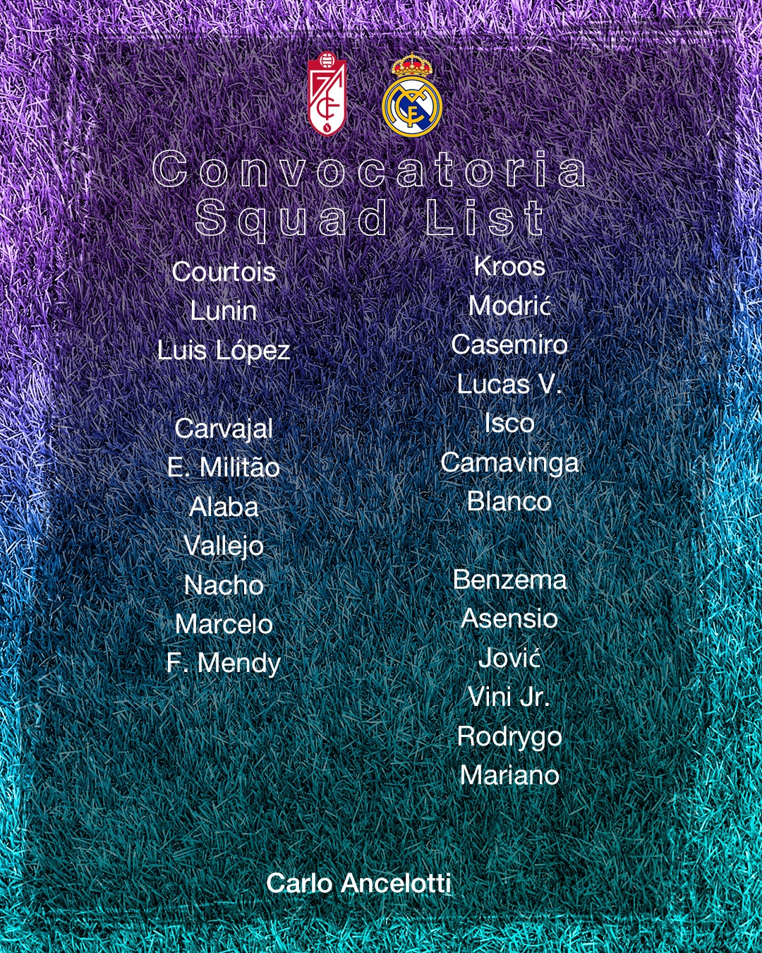 Convocatoria Granada-Real Madrid: A por el liderato de la Liga