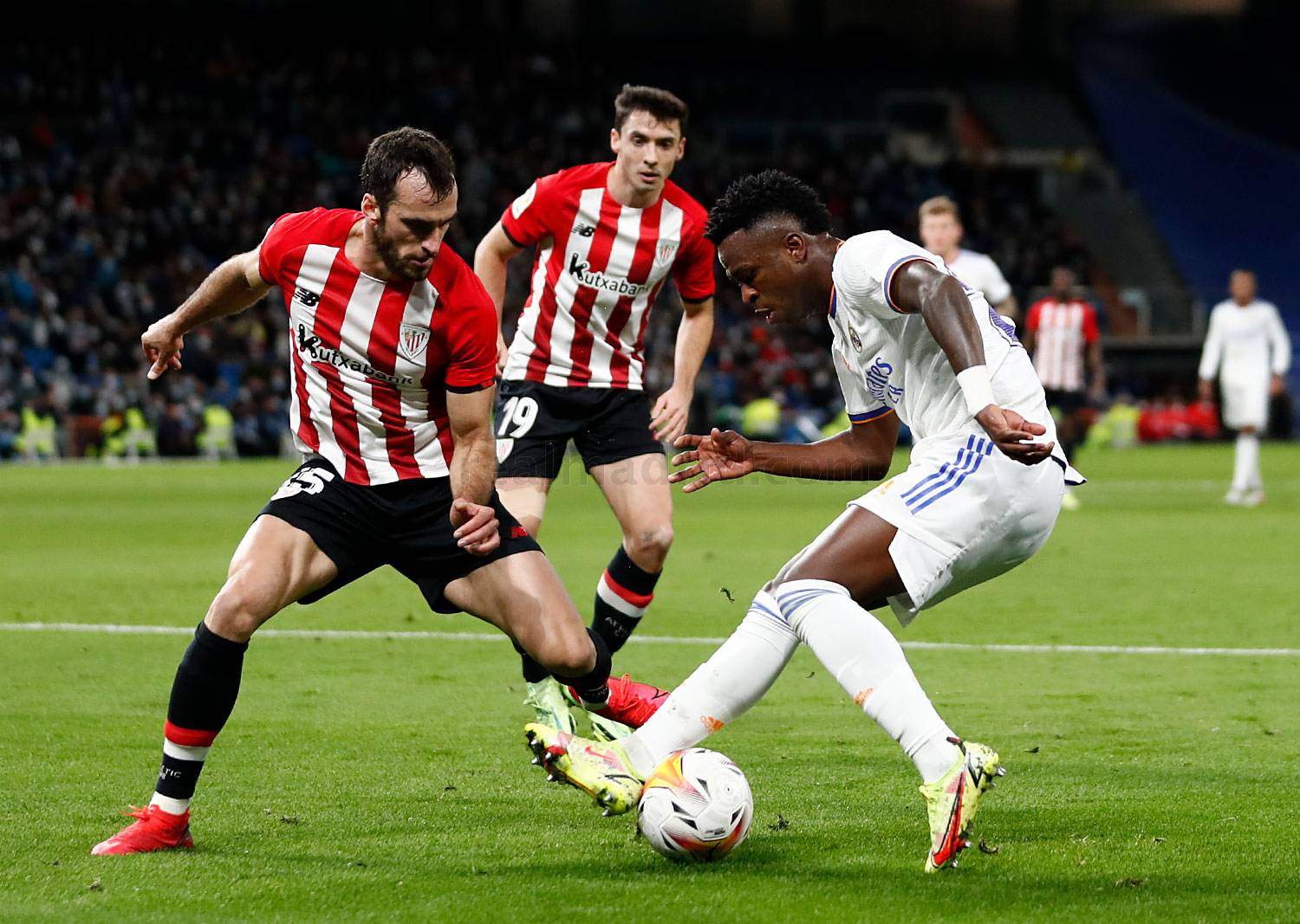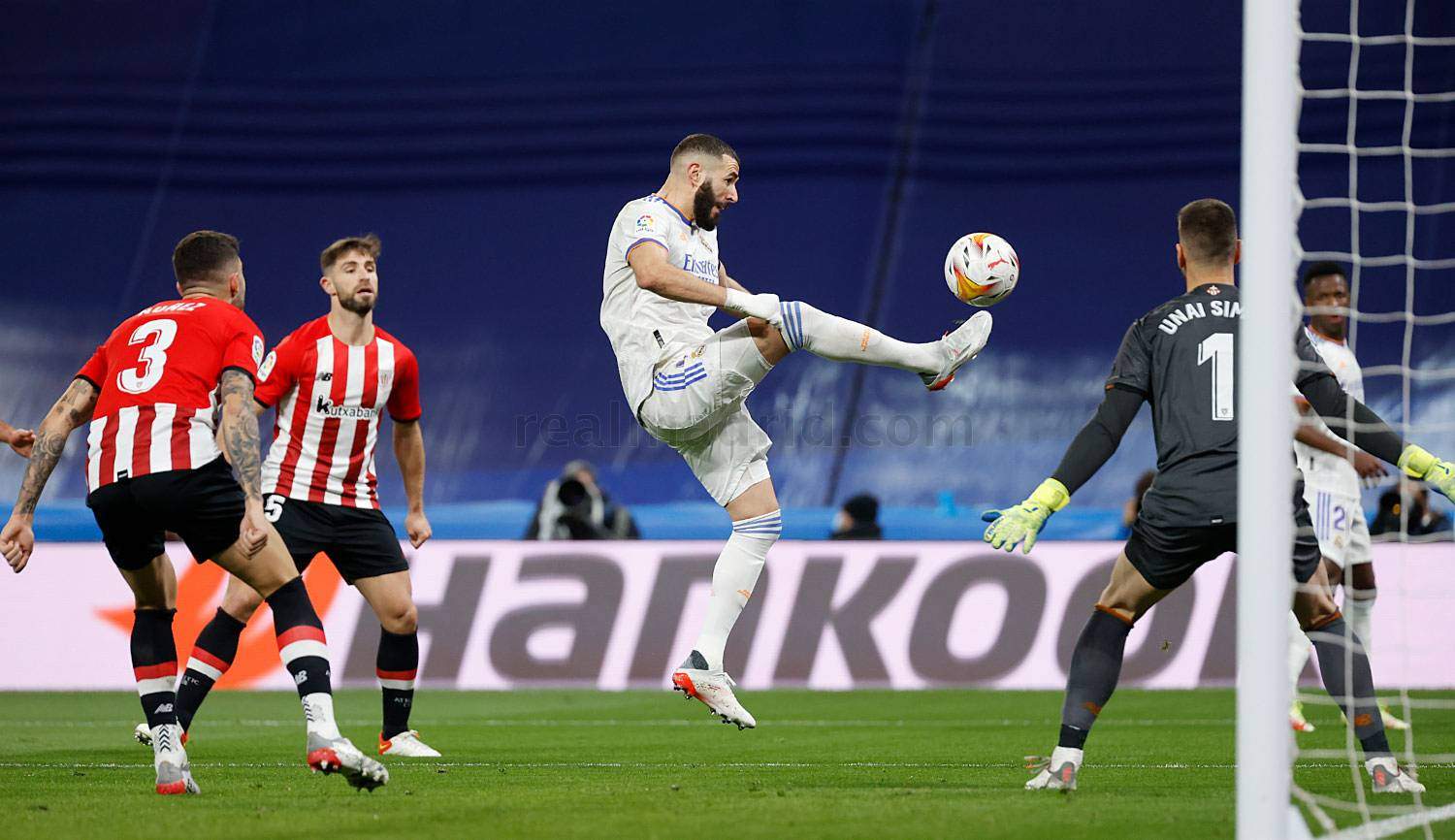 A los cuatro minutos Asensio ya avisaba con un disparo que desviaba Balenziaga a córner y dos minutos más tarde se producía la jugada polémica de la noche. Vinicius, en una gran jugada por la izquierda, colgó el balón al segundo palo para que Benzema, en pugna con Unai Núñez, apenas alcanzase a rematar tímidamente. Las imágenes no dejaban lugar a la duda y si el francés no había rematado mejor se debió únicamente al agarrón del defensa vasco, que acabó con los huesos de Benzema en el suelo.