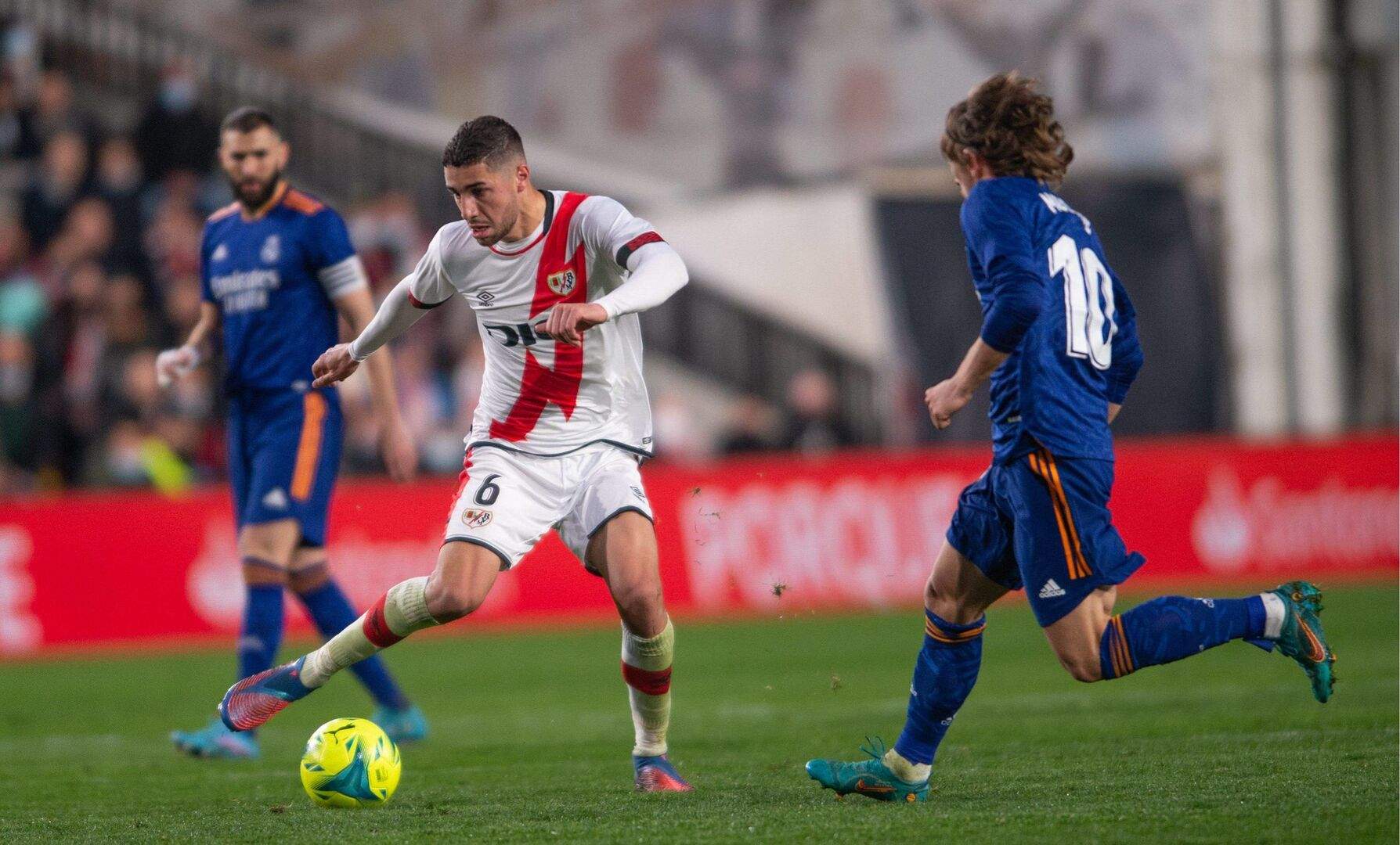 A diferencia de los partidos más recientes, el Madrid salió mucho más concentrado en la primera mitad. Encontró espacios en lo angosto del césped de Vallecas porque el Rayo no salió a esconderse. Los de Iraola plantaron cara, decididos a hacer valer la localía. Y fue en uno de esos intentos de avanzar desde el mediocampo cuando, en el minuto 4, Casemiro cortó un pase en el borde del círculo central para servir un balón a Benzema. Se viró el francés quien encontró a Asensio mordiendo el área, pero el disparo del mallorquín encontró a un atento Luca Zidane.
