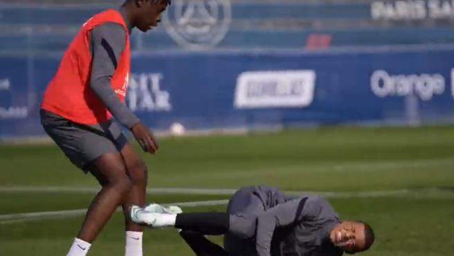 Kylian Mbappé es una seria duda para el partido del Miércoles contra el Real Madrid. Durante el entrenamiento de esta mañana, su compañero Gueye le ha pisado el pie de manera brusca y el jugador francés se ha quedado tocado.
