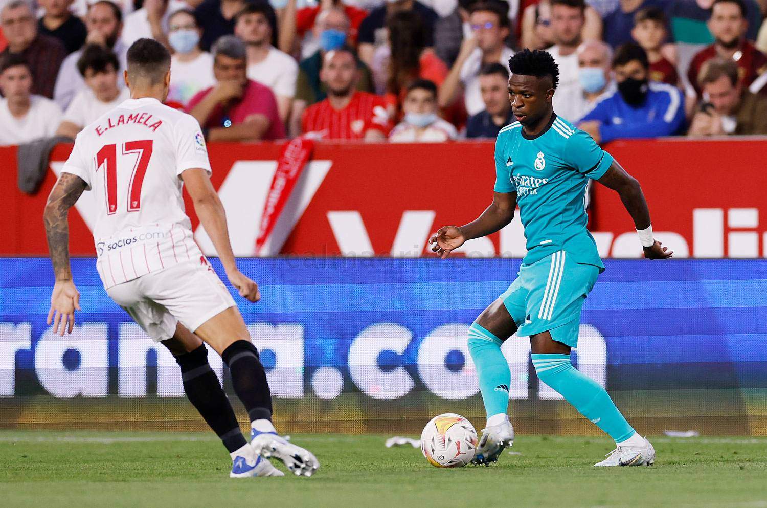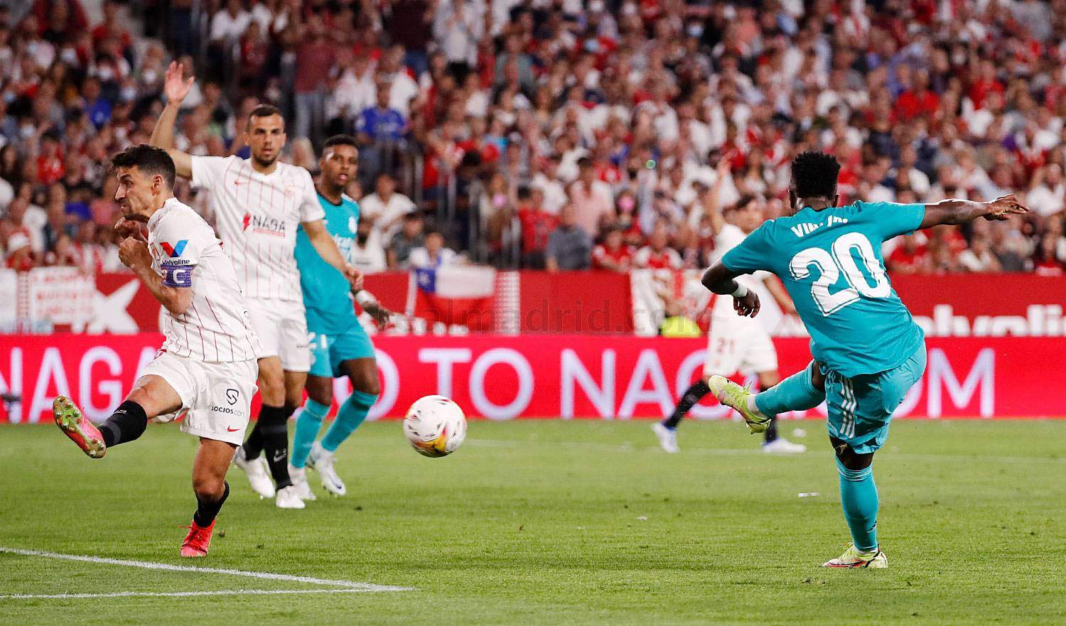 Estaba absolutamente roto el Real Madrid, que seguía sin dar con la tecla para salvar la presión del Sevilla, que hacía que una y otra vez se llevase casi todos los duelos individuales, sin que la medular, capitaneada por un impulsivo Camavinga, pudiese ponerle coto a la situación.
