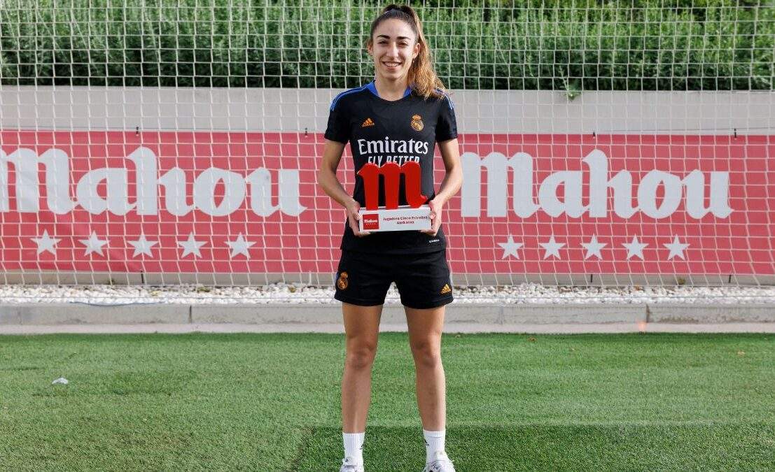 Olga Carmona ha sido la ganadora del premio a la jugadora Cinco Estrellas Mahou del mes de abril, según la elección de internautas y seguidores madridistas en las redes sociales.