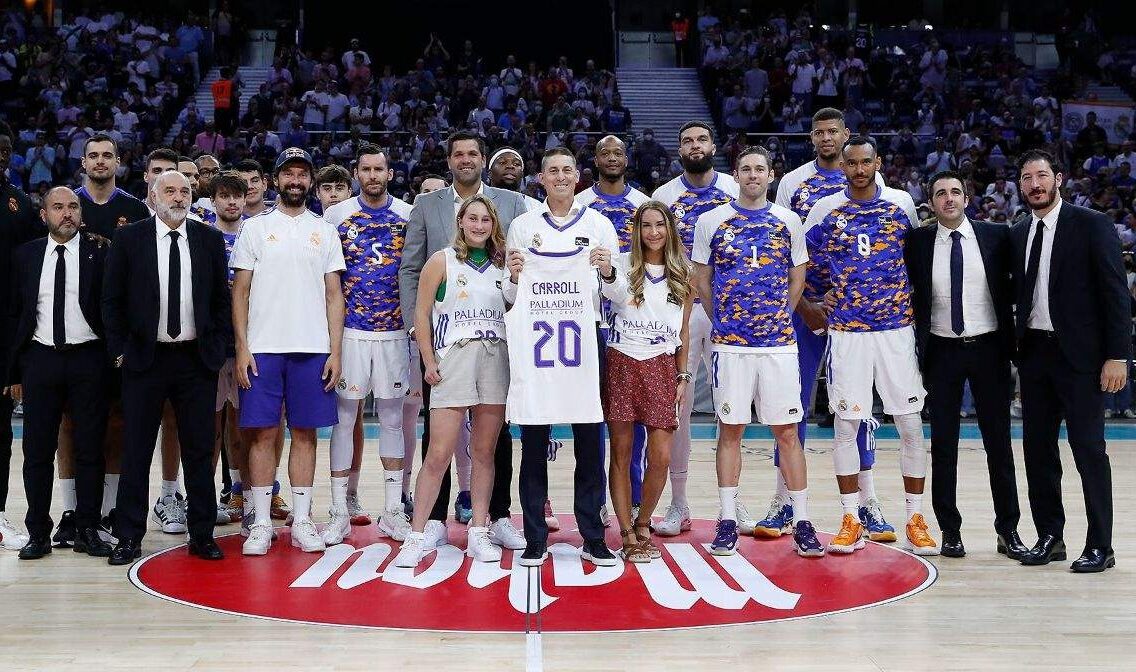En ese momento; Carroll recibió el calor de la afición, que puesta en pie ovacionó con fuerza y reconoció su labor en los 10 años que vistió de blanco, y también recibió por parte de Felipe Reyes, una camiseta conmemorativa