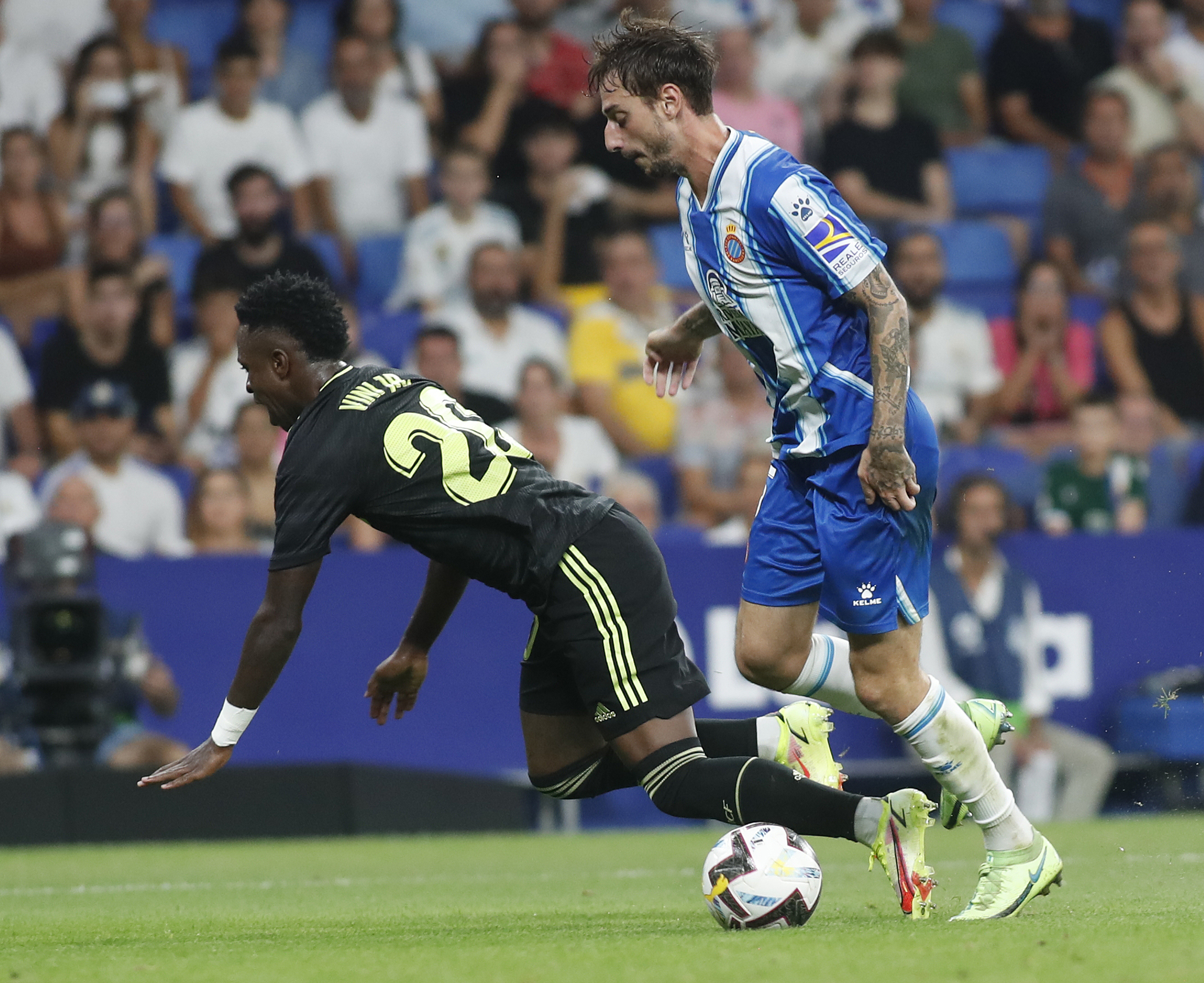 Eso sí, ya en el descuento, el Espanyol recibó una roja directa por una clara patada de Lecomte a Ceballos en la frontal del área blanquiazul. Pero no fue de primeras sino que necesitó de la revisión de la jugada en el VAR y que, al menos esta vez, esta vez sí favoreció al Real Madrid. Un VAR que durante la segunda parte, además de anularle un gol a Benzema por un fuera de juego milimétrico, no quiso entrar a valorar dos derribos a Vinicius en el área espanyolista (sobre todo el segundo), con claros visos de haber sido penalti.ç