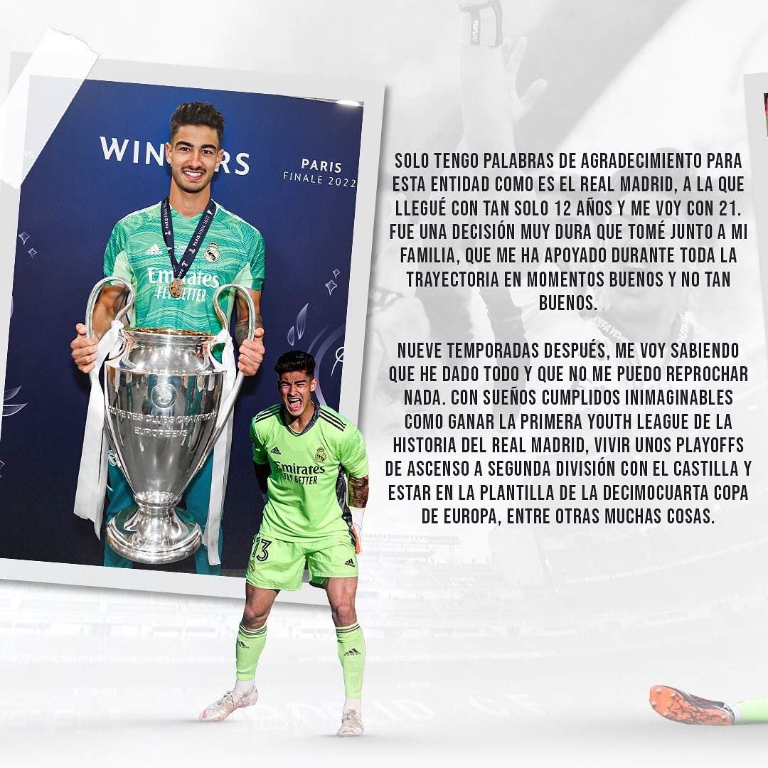«Sólo tengo palabras de agradecimiento para esta Entidad como es el Real Madrid, a la que llegué con tan solo 12 años y me voy con 21. Fue una decisión muy dura que tomé junto a mi familia, que me ha apoyado durante toda la trayectoria en momentos buenos y no tan buenos.