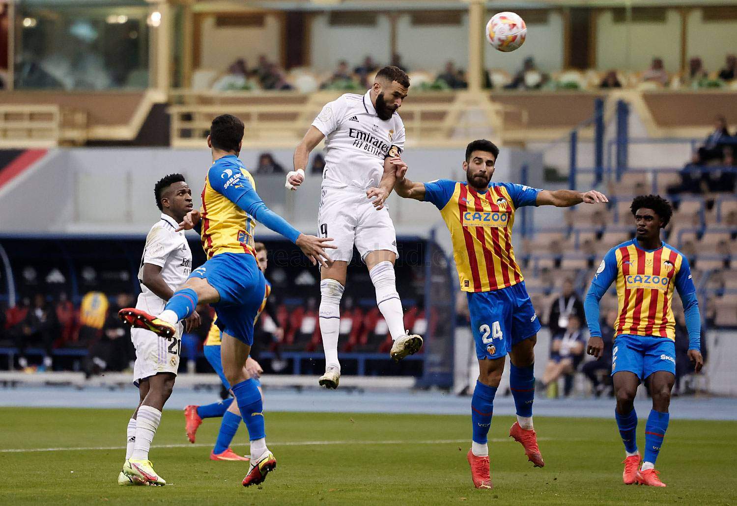 De hecho, el primer y único acercamiento del Real Madrid a la meta valencianista llegó a falta de dos minutos para el tiempo reglamentario, con un testarazo de Benzema, tras un buen pase desde la banda derecha.