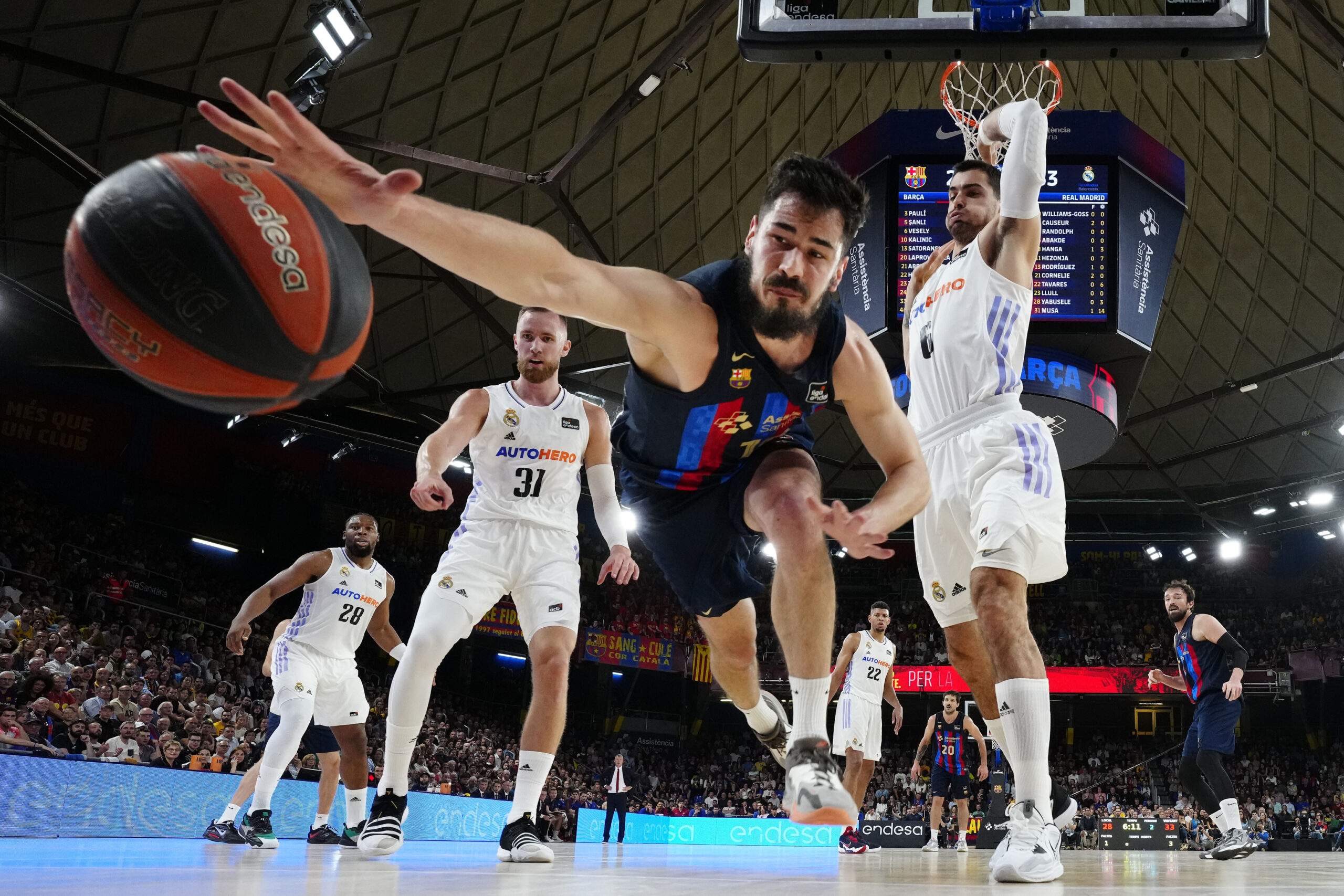 El problema llegó tras el descanso porque el Real Madrid se fue del partido. Tavares veía la cuarta personal y el Barça apretó de lo lindo, marchándose en el marcador y aprovechando que el Real Madrid perdió la chispa en ataque. Musa ya no apareció y el Barça, con Laprovittola, Satoransky y Sanli en racha, puso tierra de por medio hasta los 15 puntos al finalizar el tercer cuarto (78-63).