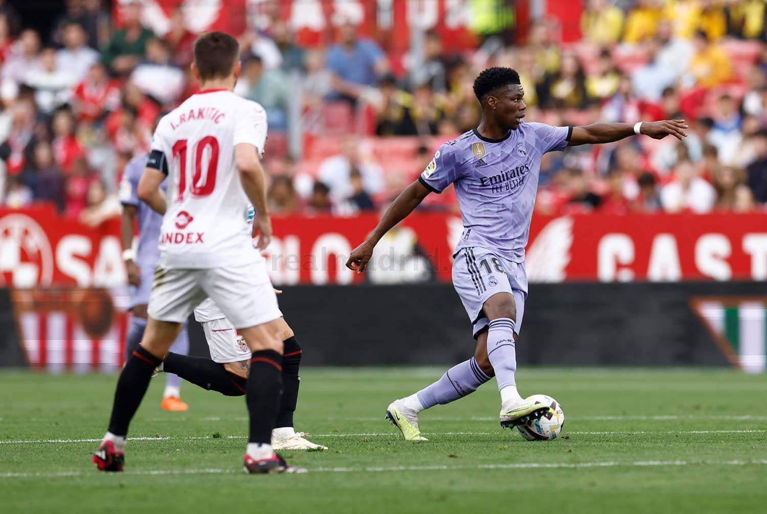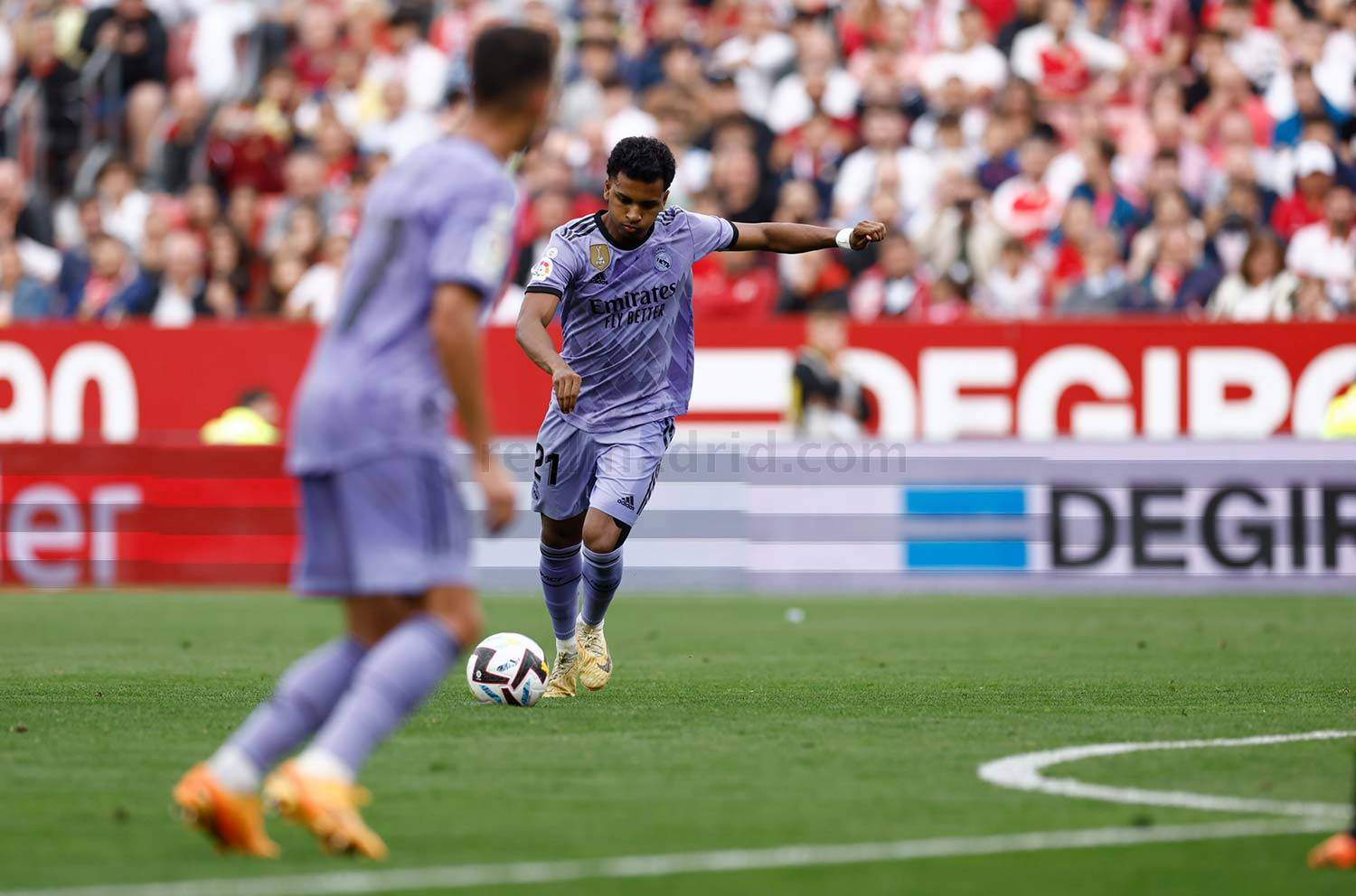 Así, a la hora de juego, Alaba mandaba alto un balón desde la frontal tras una gran internada de Rodrygo por la izquierda. Con un Sevilla más abierto y con más huecos, fruto sin duda del cansancio, el Real Madrid empezó a encontrar vías de agua por las que penetrar en su defensa.