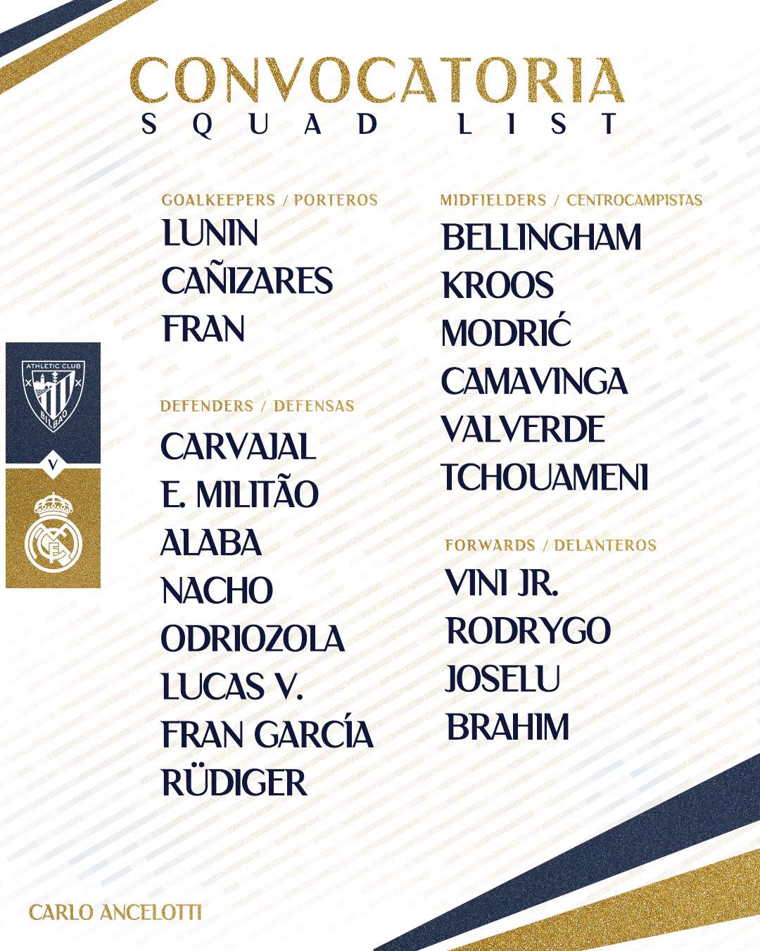 - Delanteros: Vinicius, Rodrygo, Joselu y Brahim.