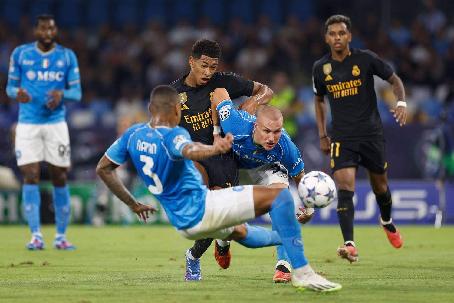 Arbitro: Clément Turpin. Amonestó a Natan por el Nápoles y a Camavinga, Bellingham y Kepa por el Real Madrid