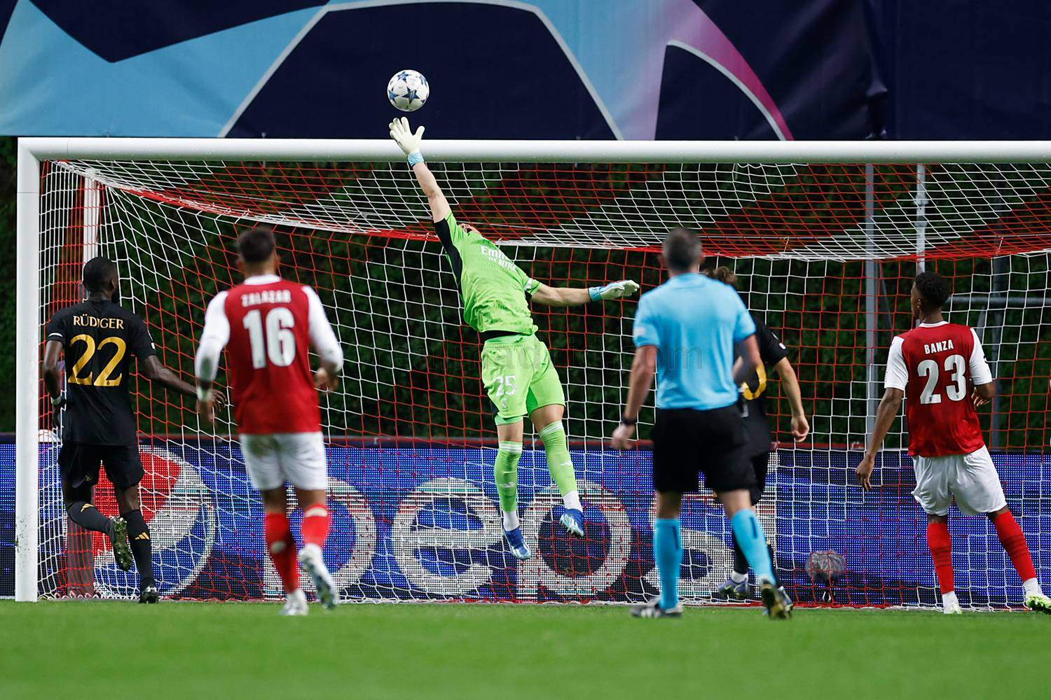 Arrancó el partido con un Real Madrid lleno de novedades, con hasta cuatro cambios con respecto al sábado en Sevilla, con Nacho, Fran García, Modric y Camavinga, en detrimento de Alaba, Mendy, Kroos y Tchouameni sin que se resintiese demasiado el dibujo y con una idea fija en la mente: sorprender a la espalda de la adelantadísima defensa portuguesa. Y eso a pesar de que instantes antes de arrancar el partido se supo que Joselu era baja de ultimísima hora por una gripe.