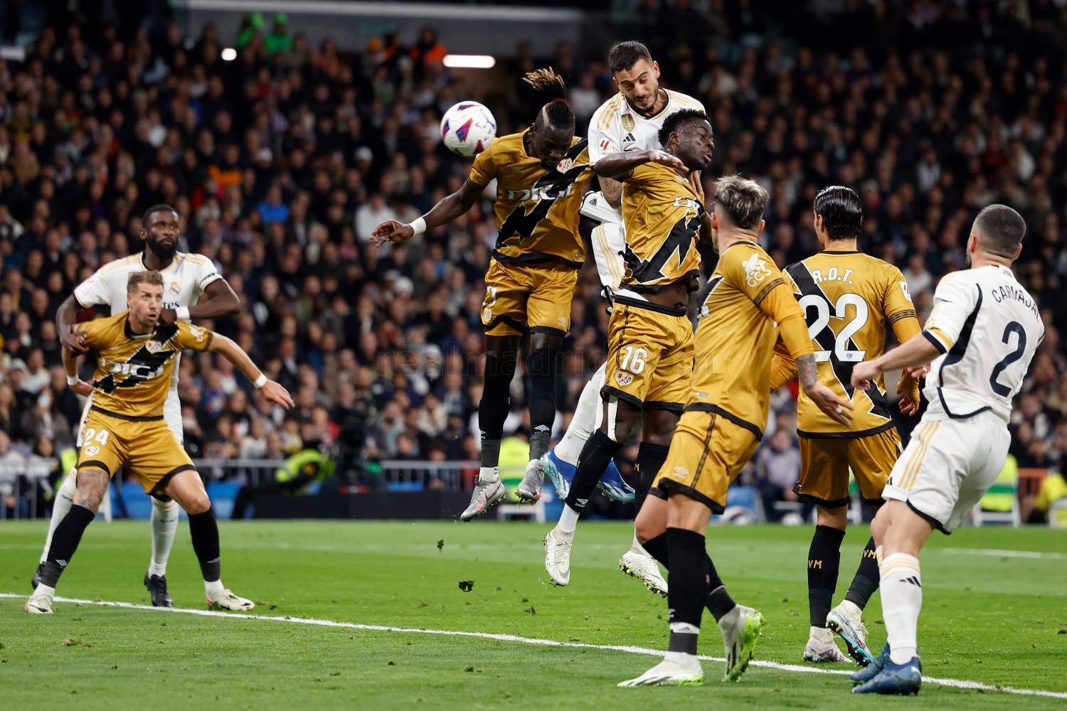 Y así, tras más de ocho minutos de descuento, y con un par de conatos de tangana, primero entre Dimitriesvksi y Vinicius, con el meta rayista simulando una agresión, y casi al final entre Rüdiger y Lejeune, el Real Madrid se dejó en el Bernabéu dos de los tres puntos que se trajo de Barcelona ya que los culés, en otro partido con mucha polémica arbitral, habían ganado el sábado en Anoeta a la Real Sociedad por la mínima.