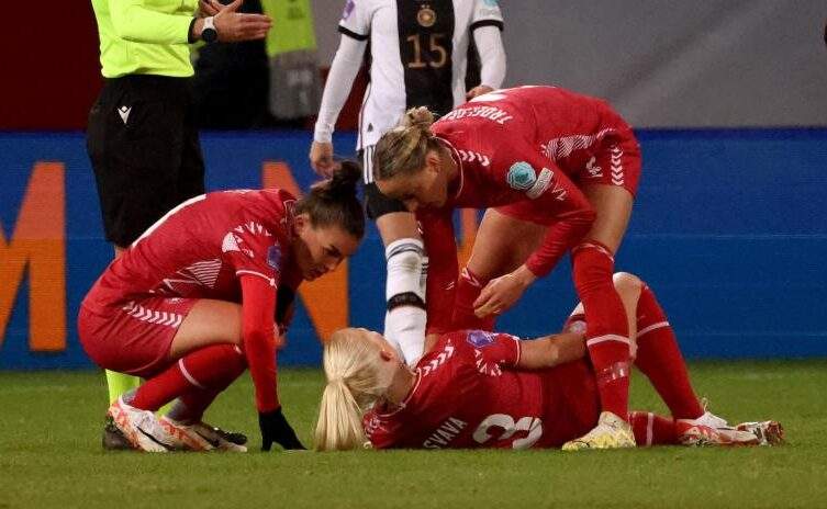 La jugadora danesa tuvo que abandonar la concentración con su país, tras resultar lesionada en los primeros minutos del partido que estaba disputando frente a Alemania, al sentir un pinchazo en su pierna derecha.