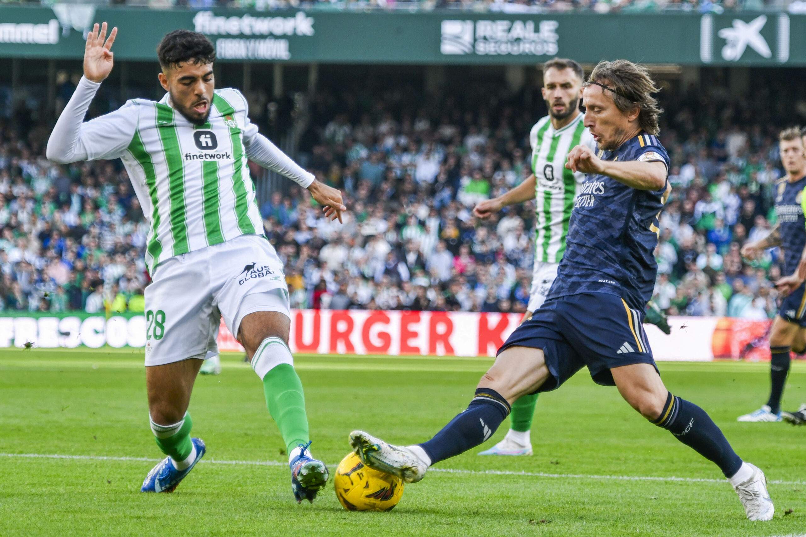 A partir de ahí, el Real Betis logró sacudirse parte del dominio madridista y trató de recuperar la pelota, aprovechando que los centrocampistas blancos cometieron demasiados errores en la salida de balón e impidiendo las llegadas de Rodrygo por la izquierda, al menos durante unos minutos.