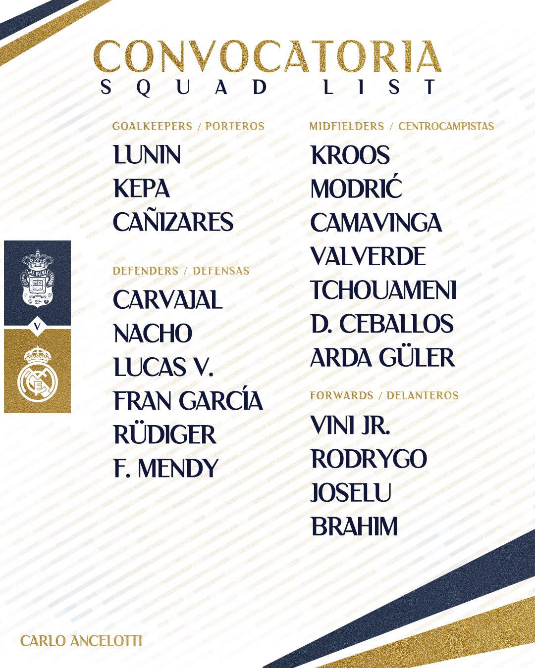 Convocatoria UD Las Palmas-Real Madrid: Estabilidad en un equipo sin Bellingham