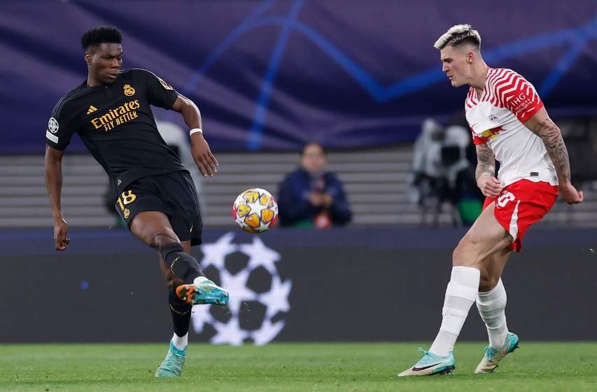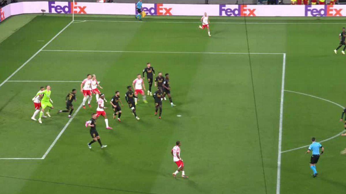 Respondió de inmedato el Leipzig, apenas un minuto después, en otro robo de la medular y Olmo y Sesko volvían a golpear por la zona izquierda madridista pero, en esta ocasión, el delantero alemán estrelló el balón contra el lateral de la red.