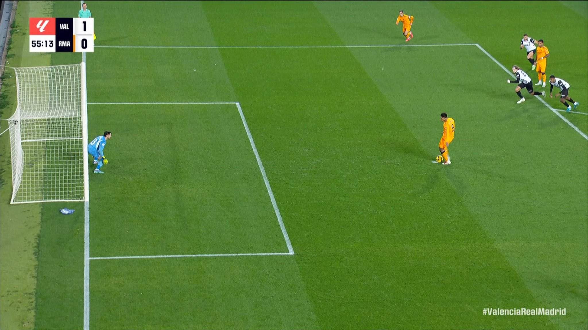 Lo asombroso de todo es que, a pesar de la claridad meridiana de la falta sobre Rodrygo que dio inicio a la jugada, para el VAR pasó inadvertida la infracción y se acabó dando validez al tanto valencianista.